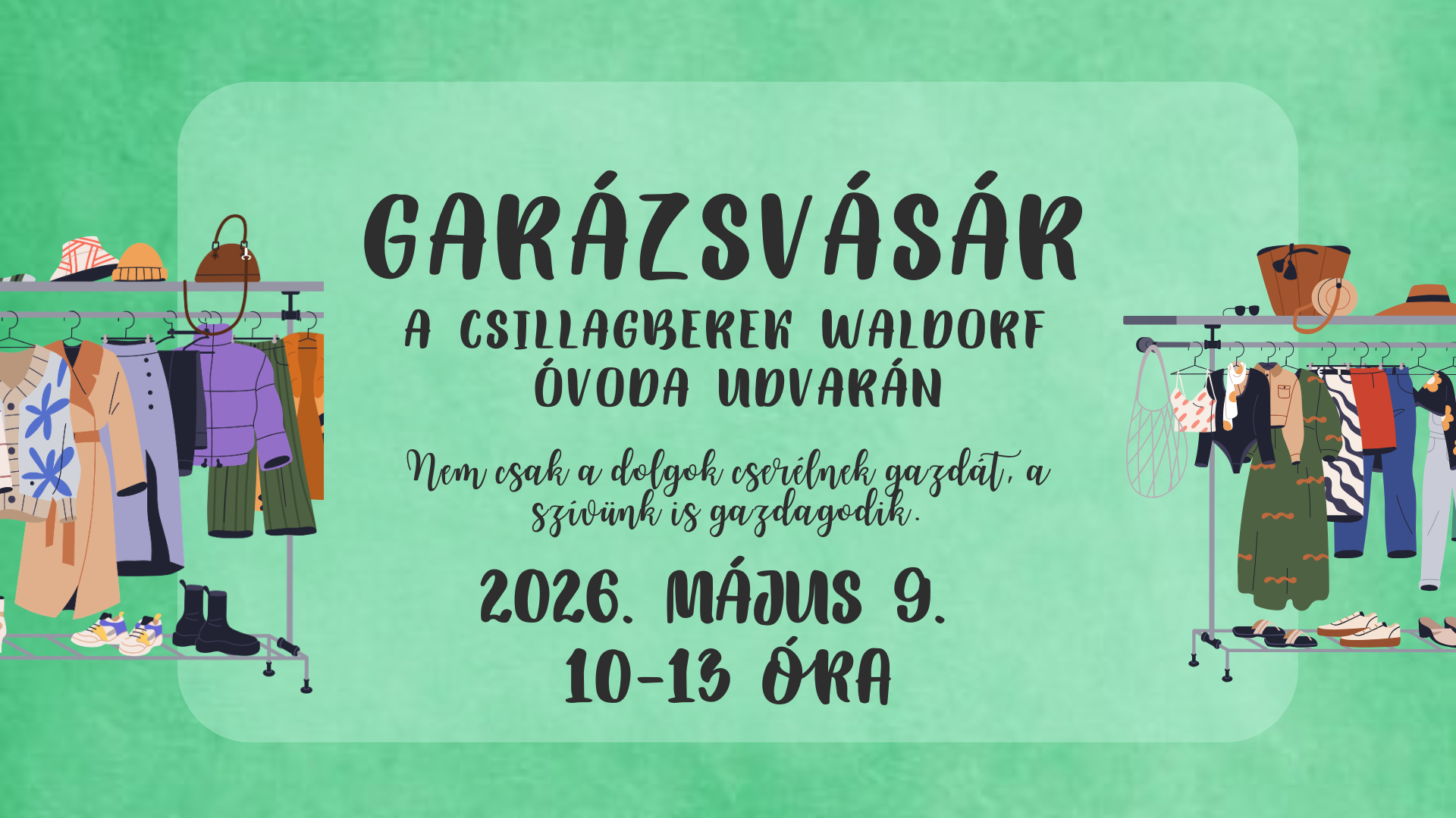 Az óvodai közösségünk által szervezett tavaszi garázsvásárra hívunk, ahol igazán kedvező áron válogathatsz kincsek között, megpihenhetsz egy beszélgetésre, és megkóstolhatod házi finomságainkat.