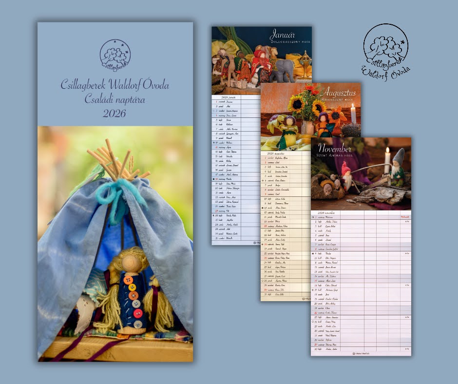 A naptár minden hónapján az óvoda szívében kialakított évszakasztal fotói jelennek meg, lapról lapra követve az év körforgását és hangulatát.